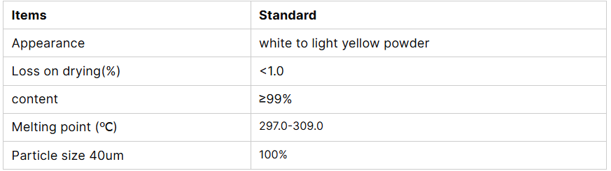 Látka je biela kryštalická pevná látka, rozpustná vo vode a niektorých organických rozpúšťadlách. Má relatívne vysokú tepelnú a chemickú stabilitu.